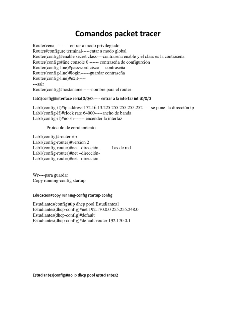 Comandos packet tracer