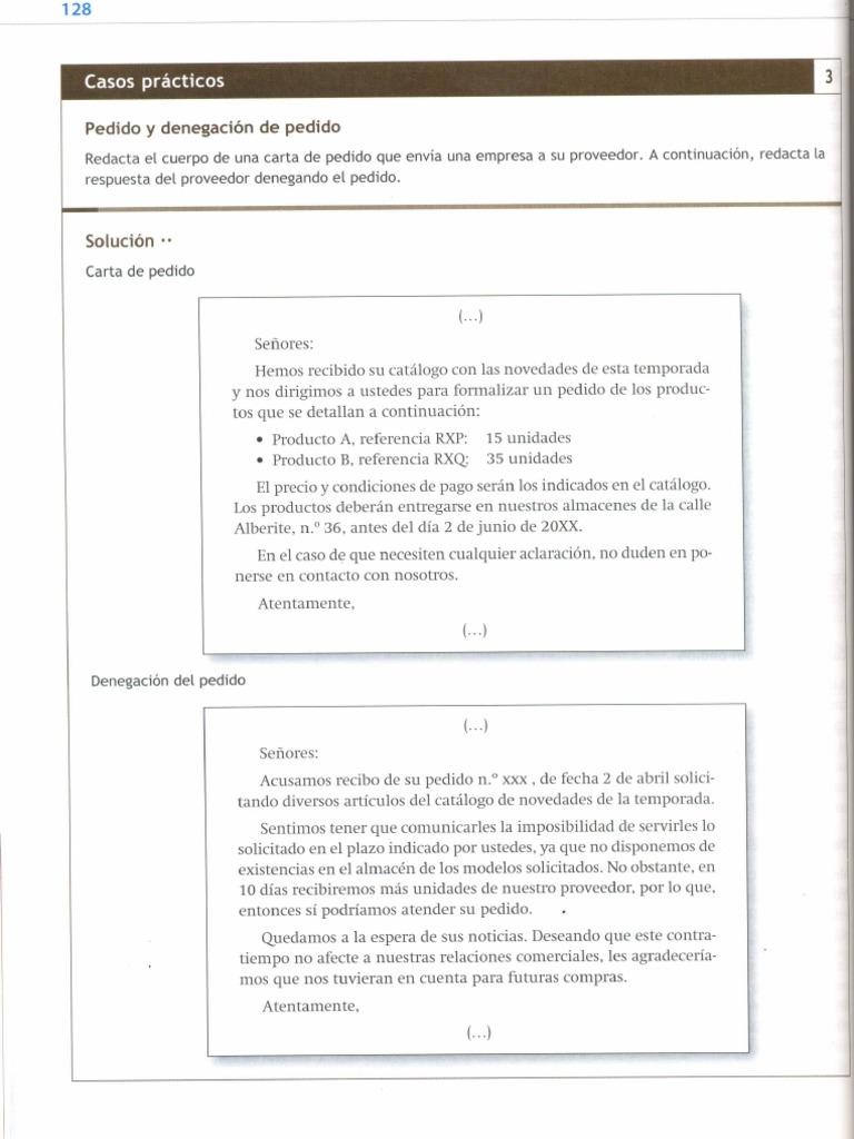 Redacta el cuerpo de una carta de pedido que envia una empresa a su proveedor. A continuacién, redacta la