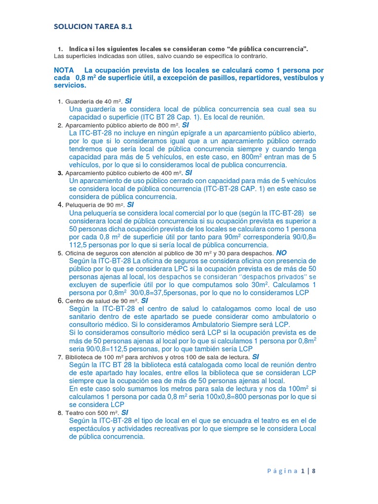 segn la ITC-BT-28 ser local de pblica concurrencia si tiene una ocupacin de