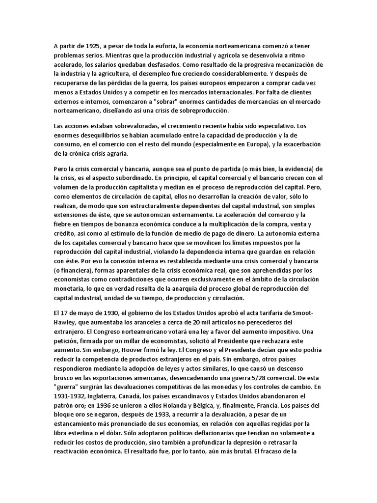 exportacin de materias primas, ahora invendibles. La crisis de 1929 difera de una crisis cclica