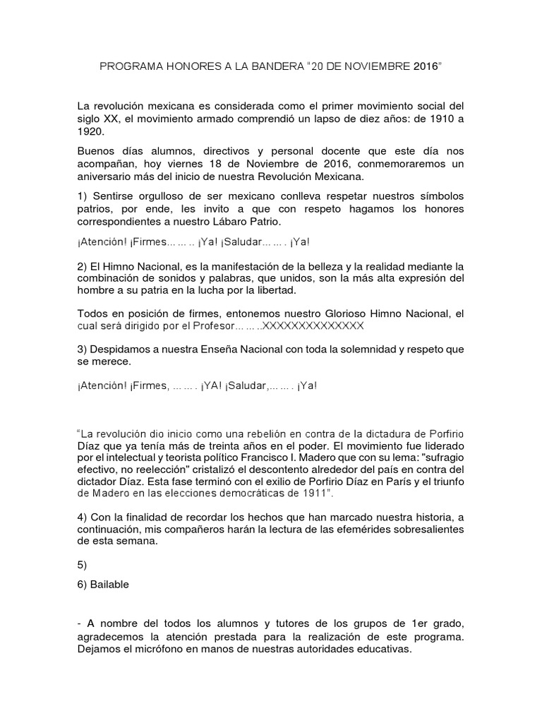 PROGRAMA HONORES A LA BANDERA 20 DE NOVIEMBRE 2016