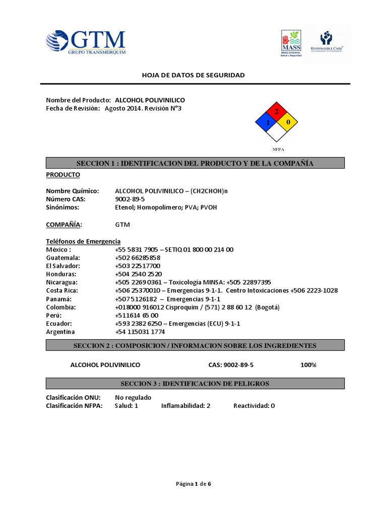 Nombre del Producto: ALCOHOL POLIVINILICO