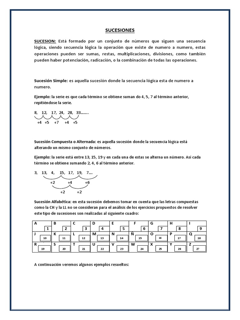 Sucesin Simple: es aquella sucesin donde la secuencia lgica esta de numero a