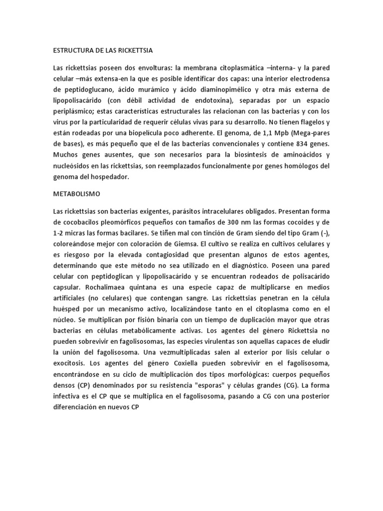 bacterias en clulas metablicamente activas. Los agentes del gnero Rickettsia no