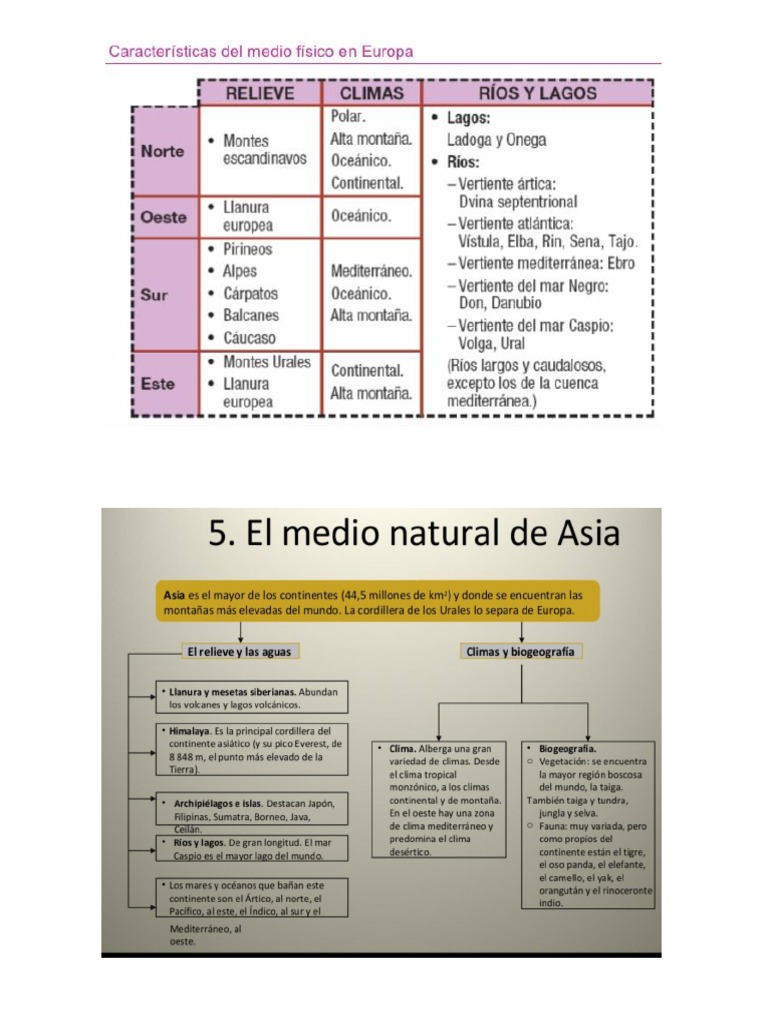 Asia es principalmente una gran meseta rodeada por cordilleras. Al Norte se extienden sus llanuras