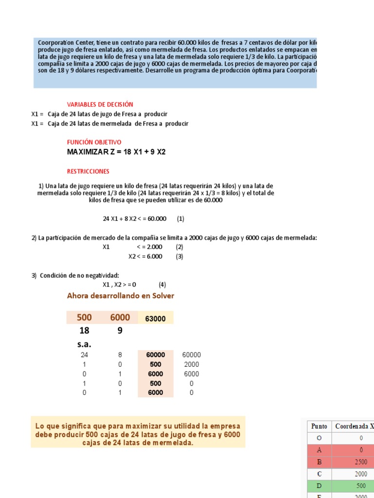 debe producir 500 cajas de 24 latas de jugo de fresa y 6000