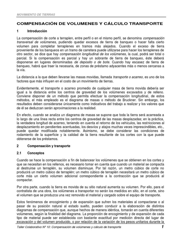 Taller Colaborativo N 10: Compensacin de volmenes y clculo de transporte 10