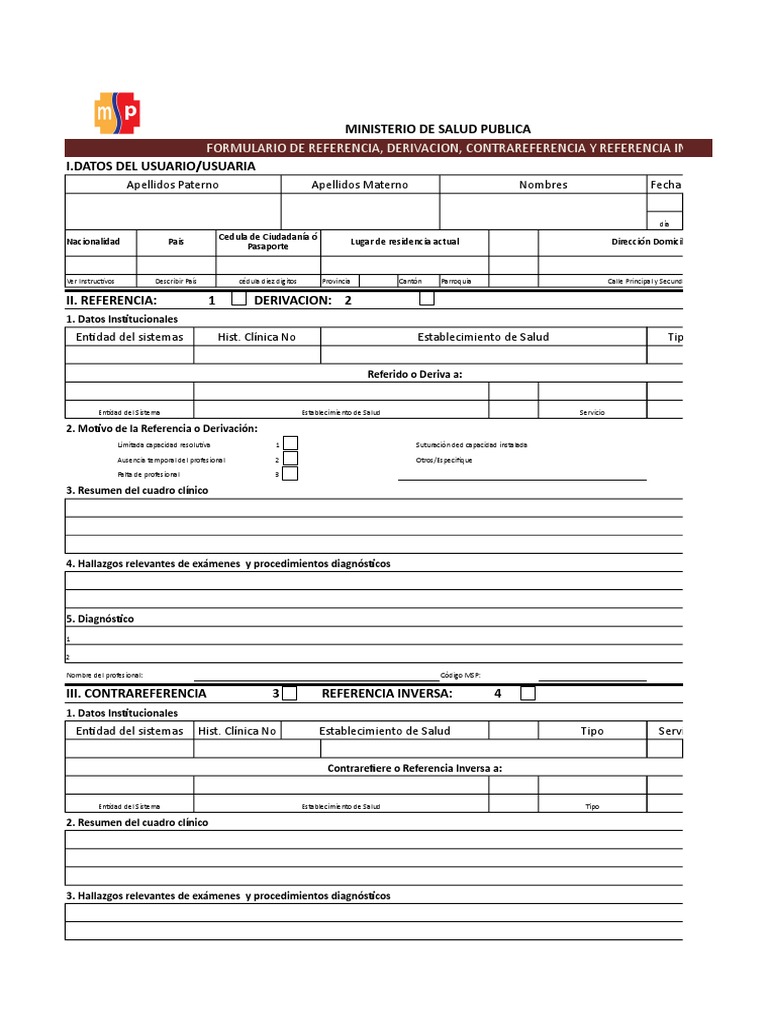 FORMULARIO DE REFERENCIA, DERIVACION, CONTRAREFERENCIA Y REFERENCIA INVERSA