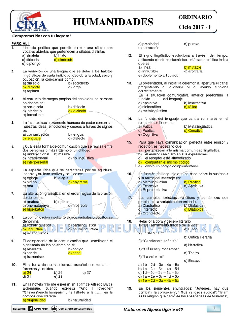 Examen de Humanidades: Funciones del Lenguaje y Literatura