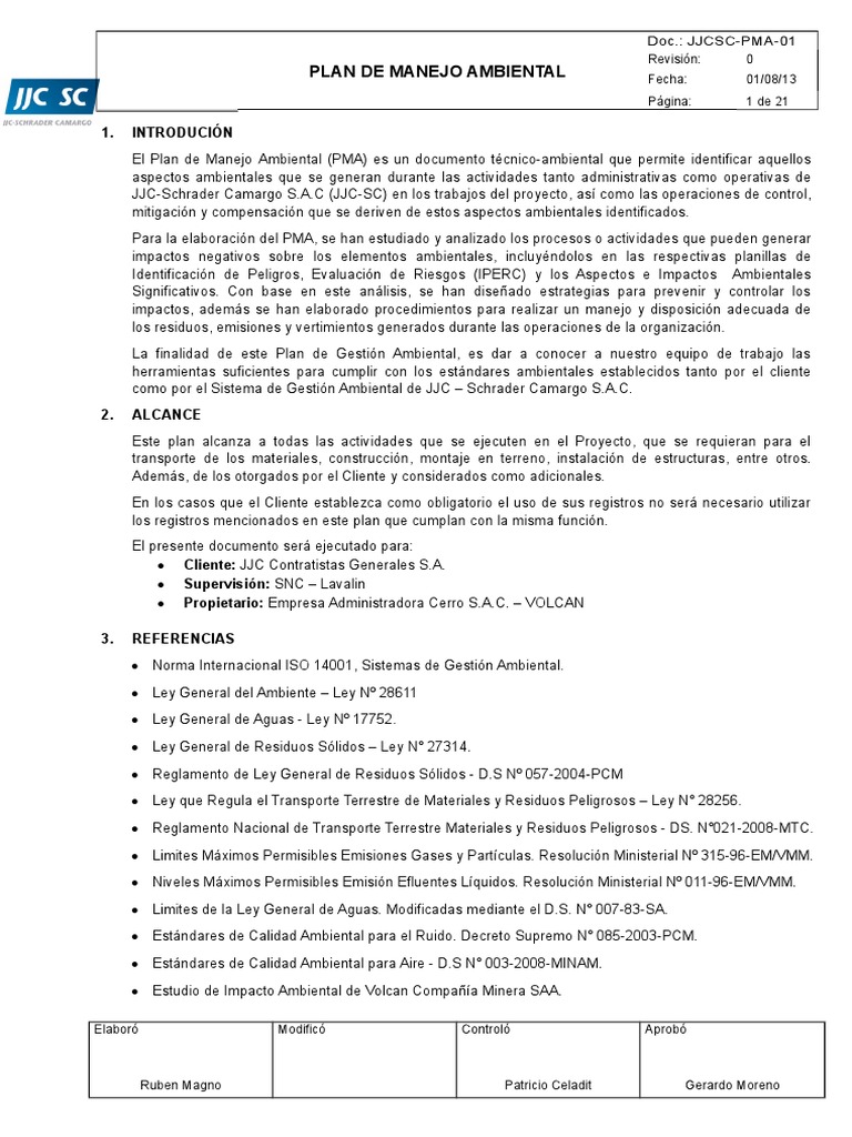 JJCSC-PMA-01 Rev.0 Plan de Manejo Ambiental