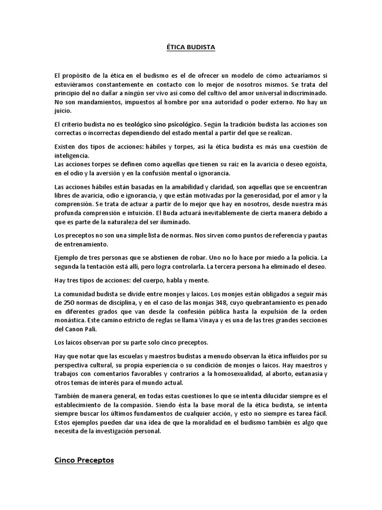 El propsito de la tica en el budismo es el de ofrecer un modelo de cmo actuaramos si