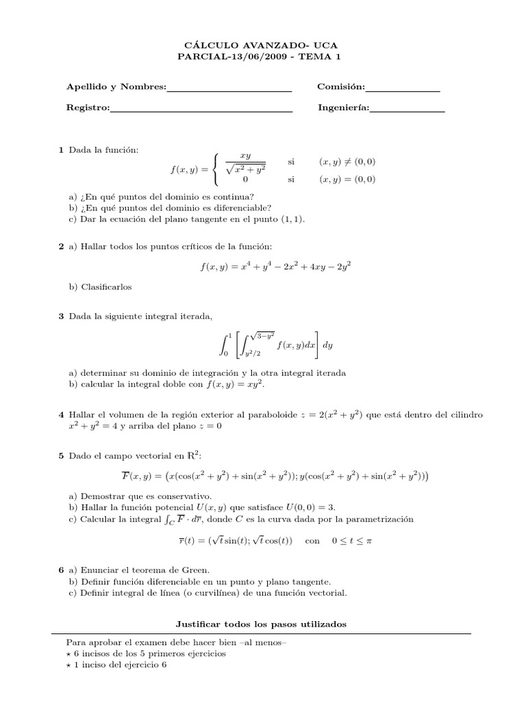 b) Sea f : R2 R una funcion C 1 tal que el plano tangente al grafico de f en (1, 0, f (1, 0))