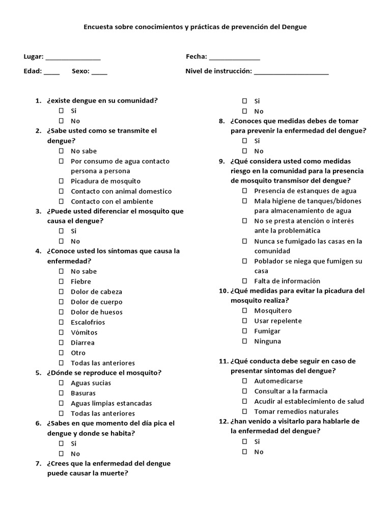 Encuesta sobre conocimientos y prcticas de prevencin del Dengue