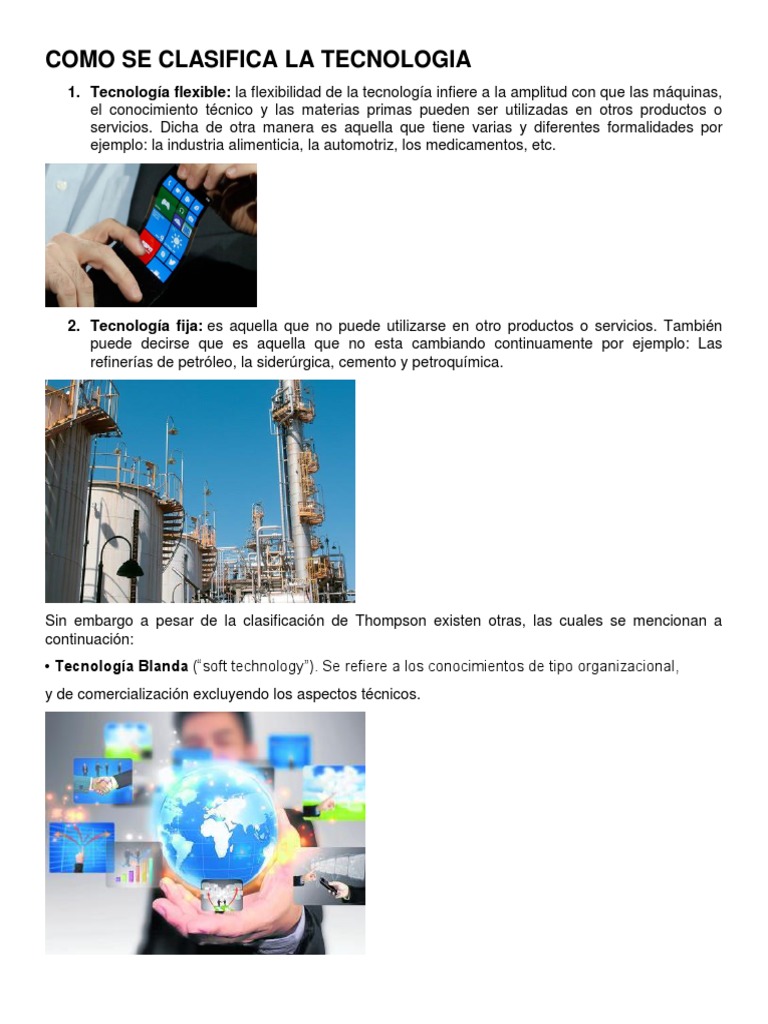 tecnologa es frecuente la incidencia de tecnologas de equipo y de proceso, por lo que a veces se le