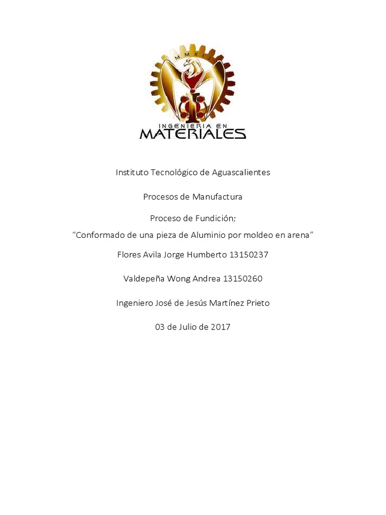 moldeado en arena, fundido y colado del metal. Reproduccin que permite considerar las propiedades