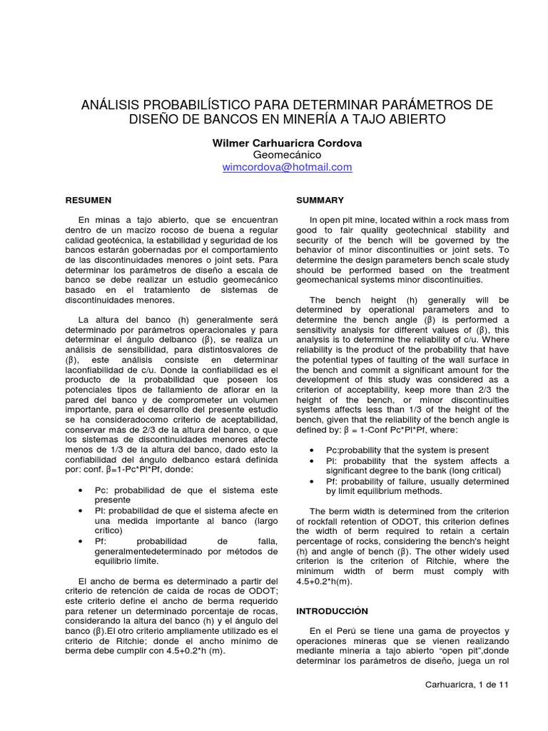 rocas de bancos superiores. Probabilstico Para Determinar Parmetros de