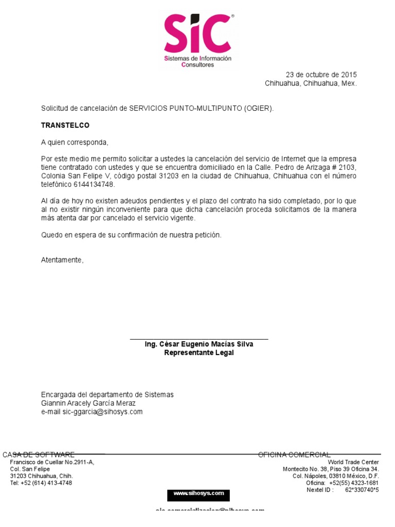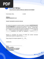 Por este medio me permito solicitar a ustedes la cancelacin del servicio de Internet que la empresa