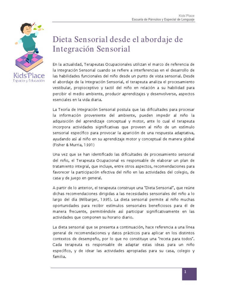Dieta sensorial corresponde a sugerencias de actividades concretas para