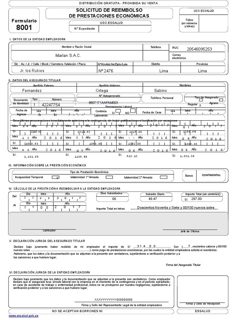 nuevos soles ............................................................................) como pago de prestaciones econmicas, por las cuales la entidad empleadora solicita el reembolso.