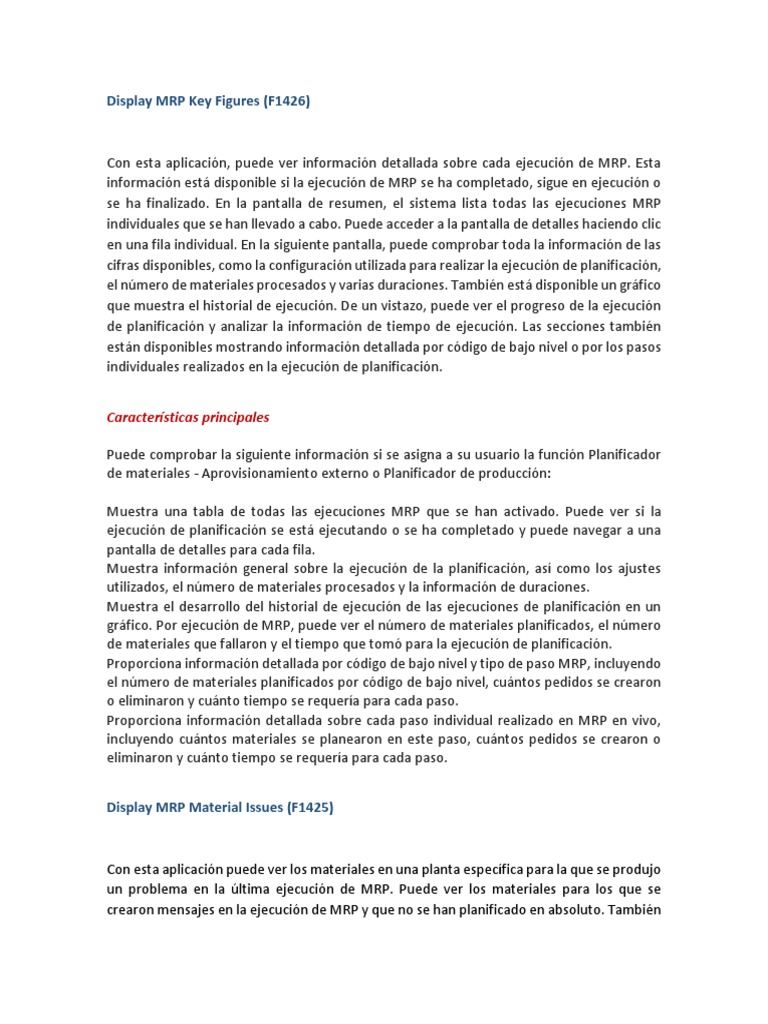 Con esta aplicacin, puede ver informacin detallada sobre cada ejecucin de MRP. Esta