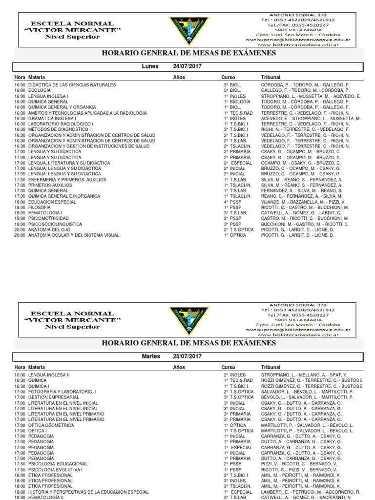 HORARIO GENERAL DE MESAS DE EXMENES
