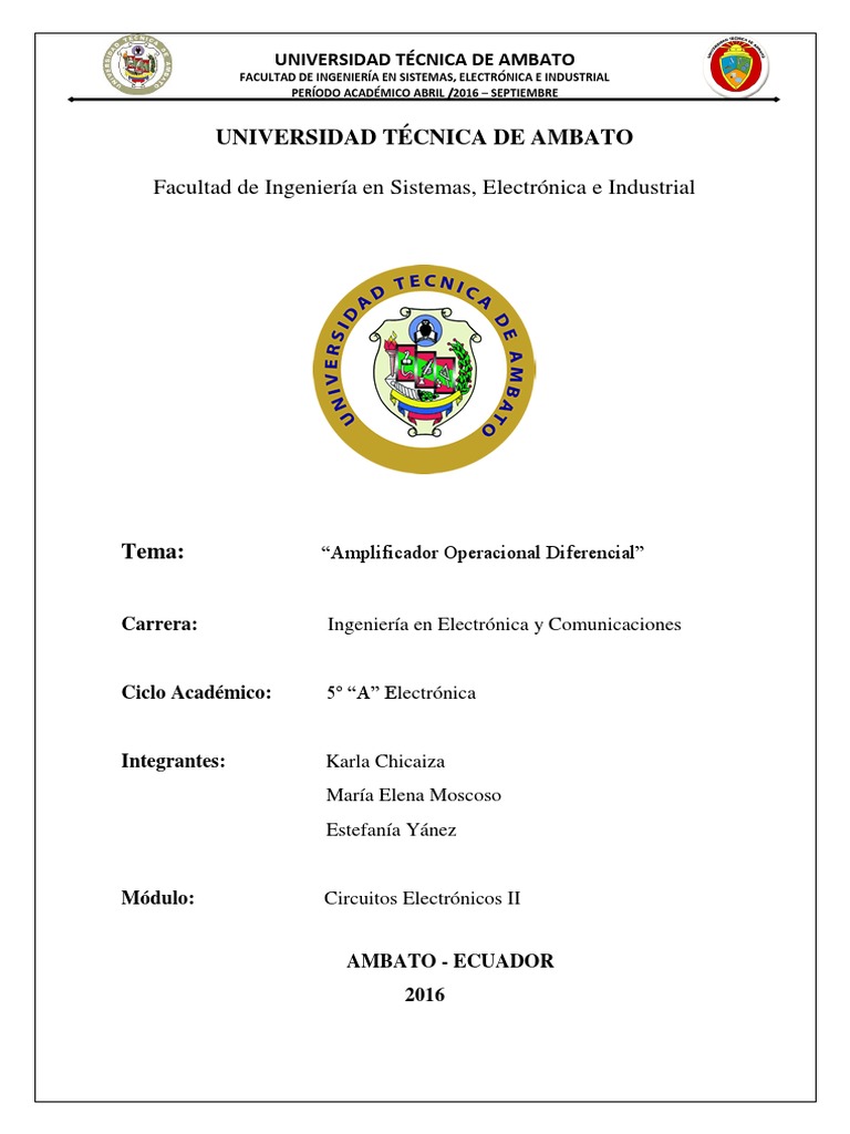 La presente prctica se refiere al estudio de un Amplificador Operacional Diferencial en