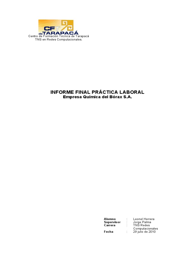 de Redes Computacionales en la institución C.F.T. Tarapacá, dicha práctica se