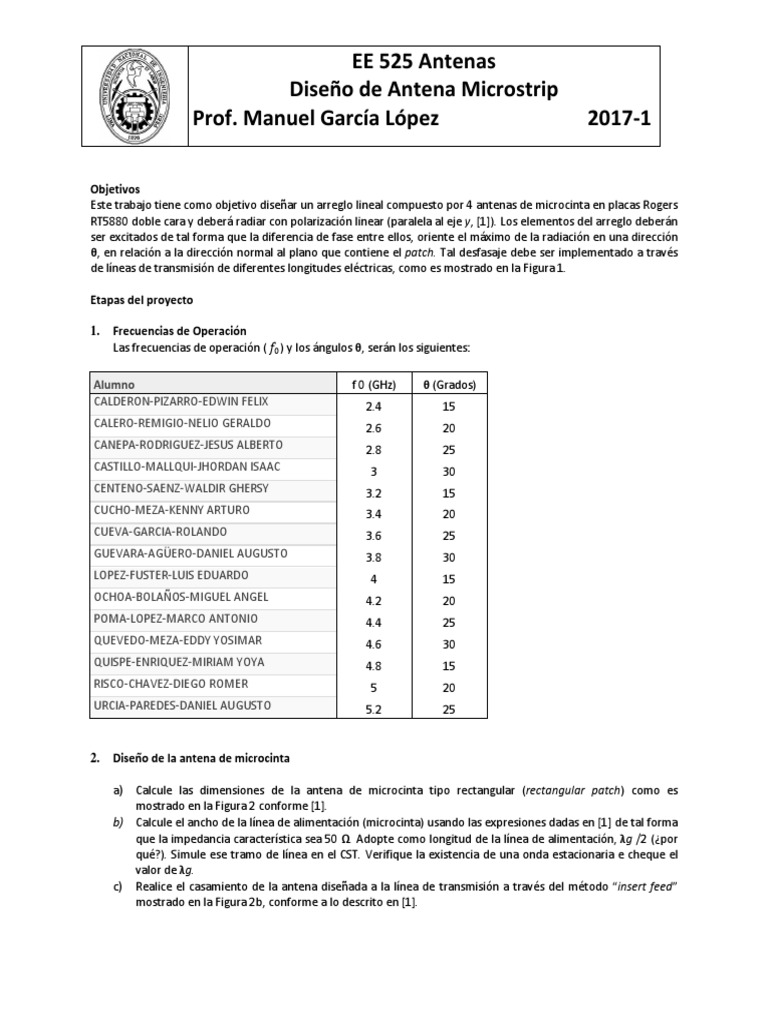Este trabajo tiene como objetivo disear un arreglo lineal compuesto por 4 antenas de microcinta en placas Rogers
