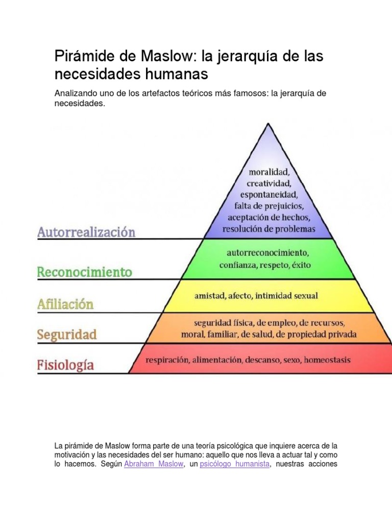 La pirmide de Maslow forma parte de una teora psicolgica que inquiere acerca de la