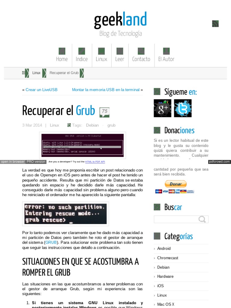 el gestor de arranque Grub. Para reinstalar Grub los pasos a