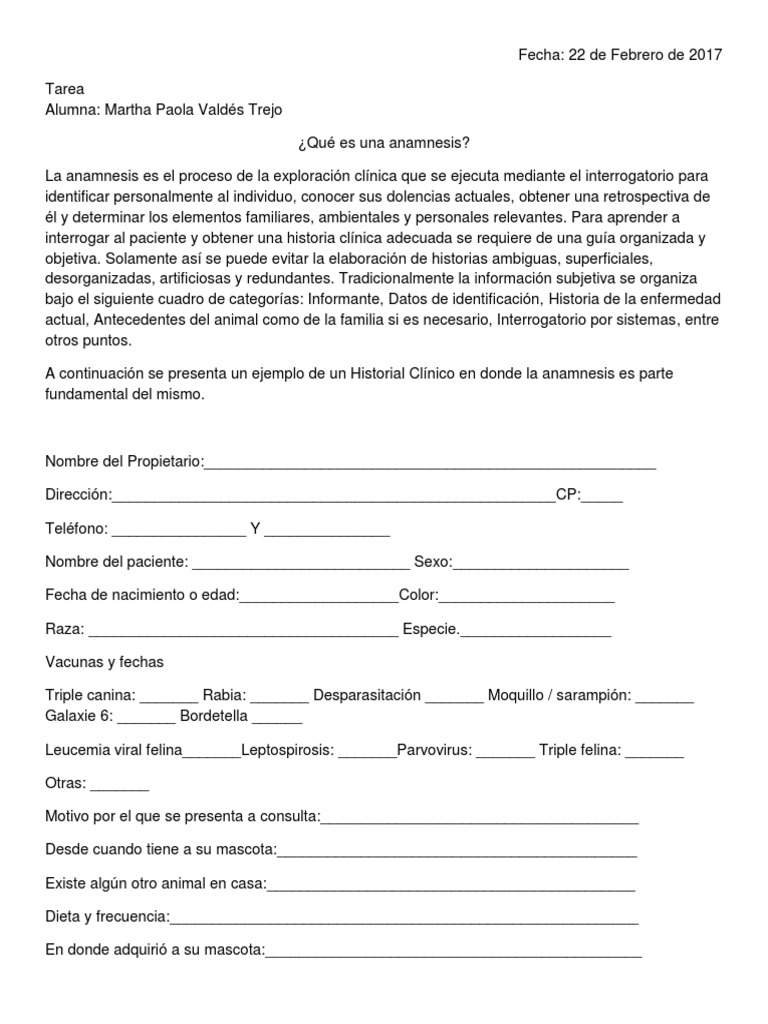 A continuacin se presenta un ejemplo de un Historial Clnico en donde la anamnesis es parte