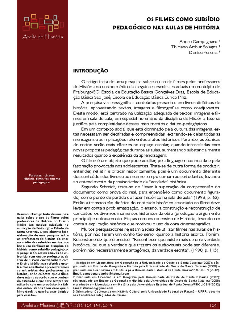 verdade que pode ser construda com base nos in- corporado ao filme levar o aluno desmotivao,
