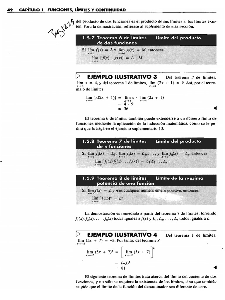 los teoremas 9 y 10 de limites, respectivamente. Cada uno de estos teoremas se