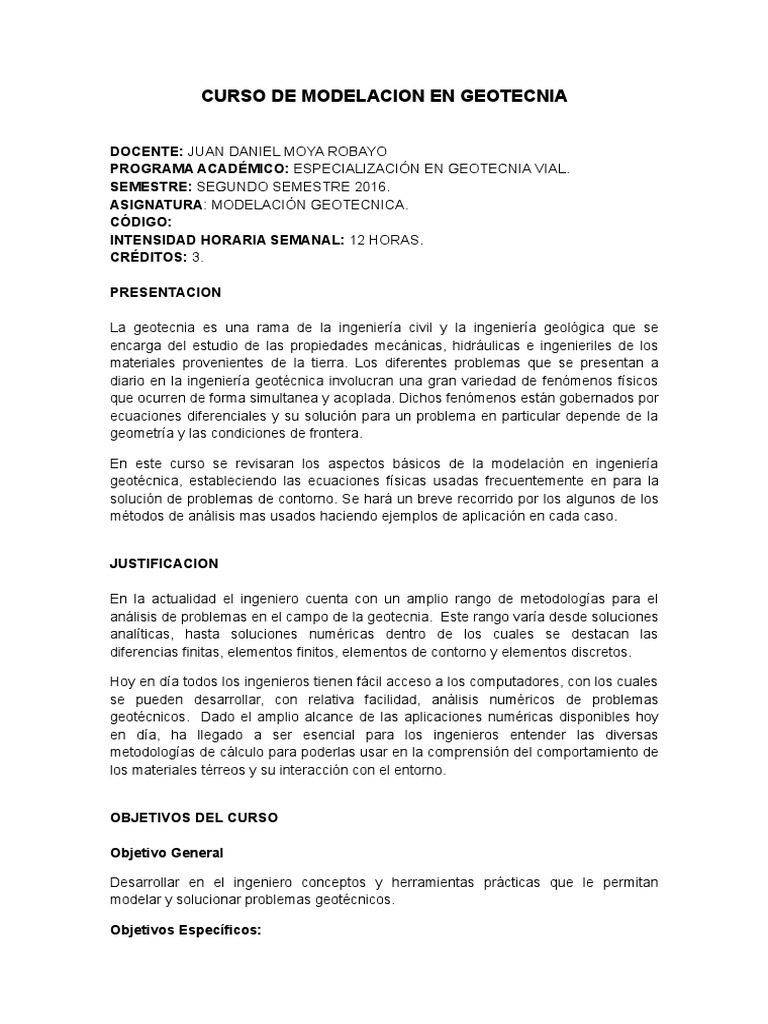 ASIGNATURA: MODELACIN GEOTECNICA.