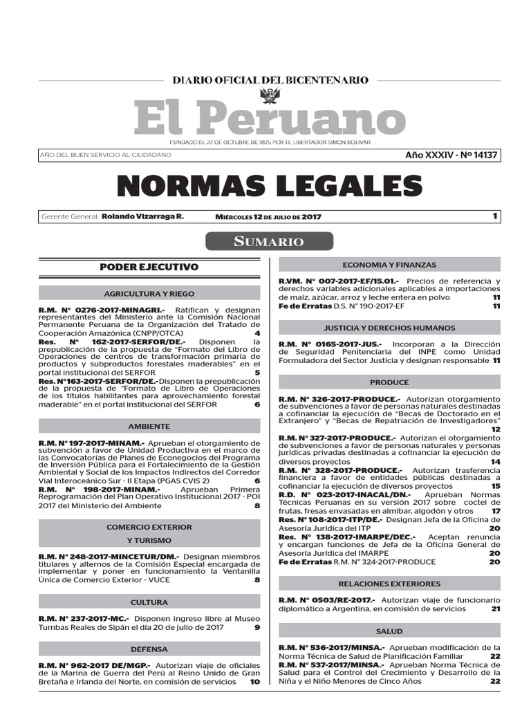 104 NORMAS LEGALES Mircoles 12 de julio de 2017 / El Peruano
