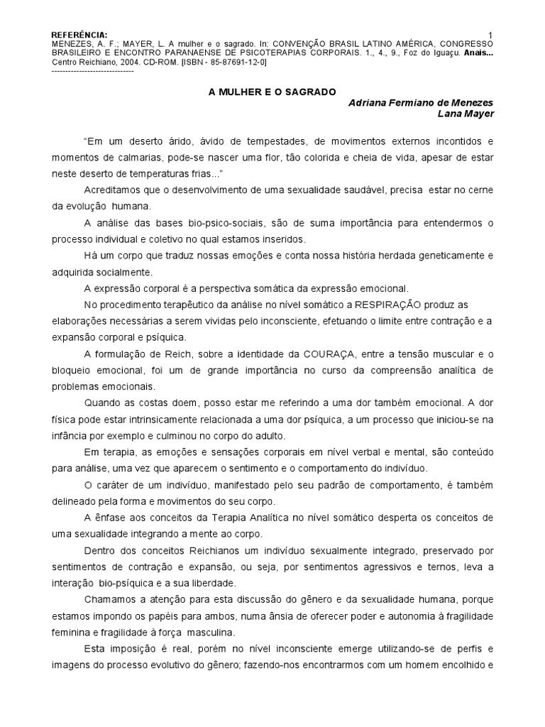 MENEZES, A. F.; MAYER, L. A mulher e o sagrado. In: CONVENO BRASIL LATINO AMRICA, CONGRESSO