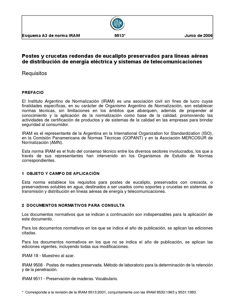 IRAM 9588 - Postes de madera preservada para lneas areas de energa y telecomunicaciones -