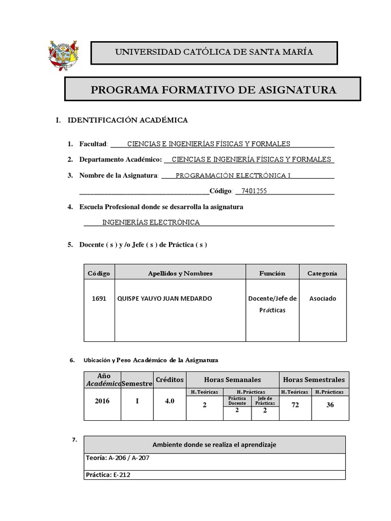 3. Nombre de la Asignatura: PROGRAMACIN ELECTRNICA I