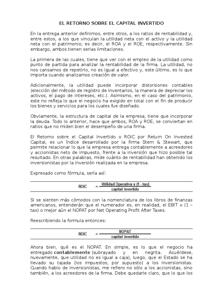EL RETORNO SOBRE EL CAPITAL INVERTIDO