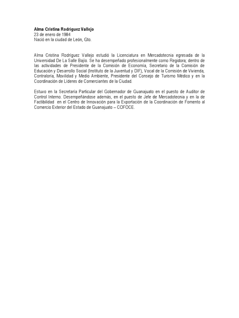 Alma Cristina Rodrguez Vallejo estudi la Licenciatura en Mercadotecnia egresada de la