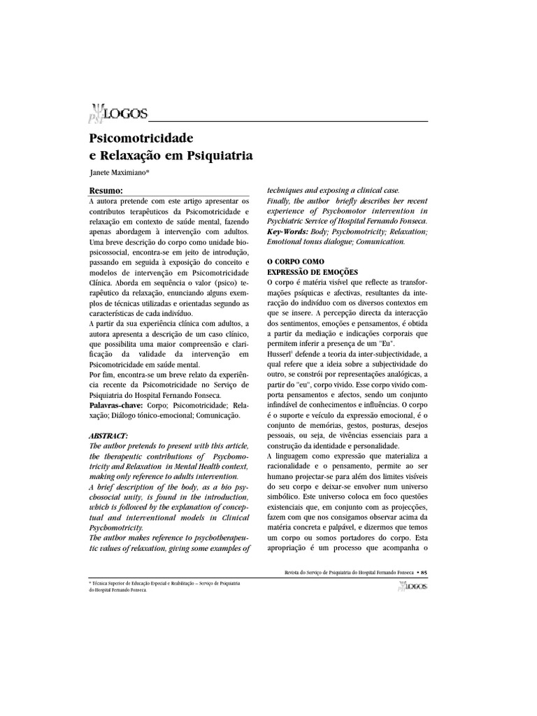 motora em sade mental, visa permitir a ansiosas e expectantes das primeiras fases de
