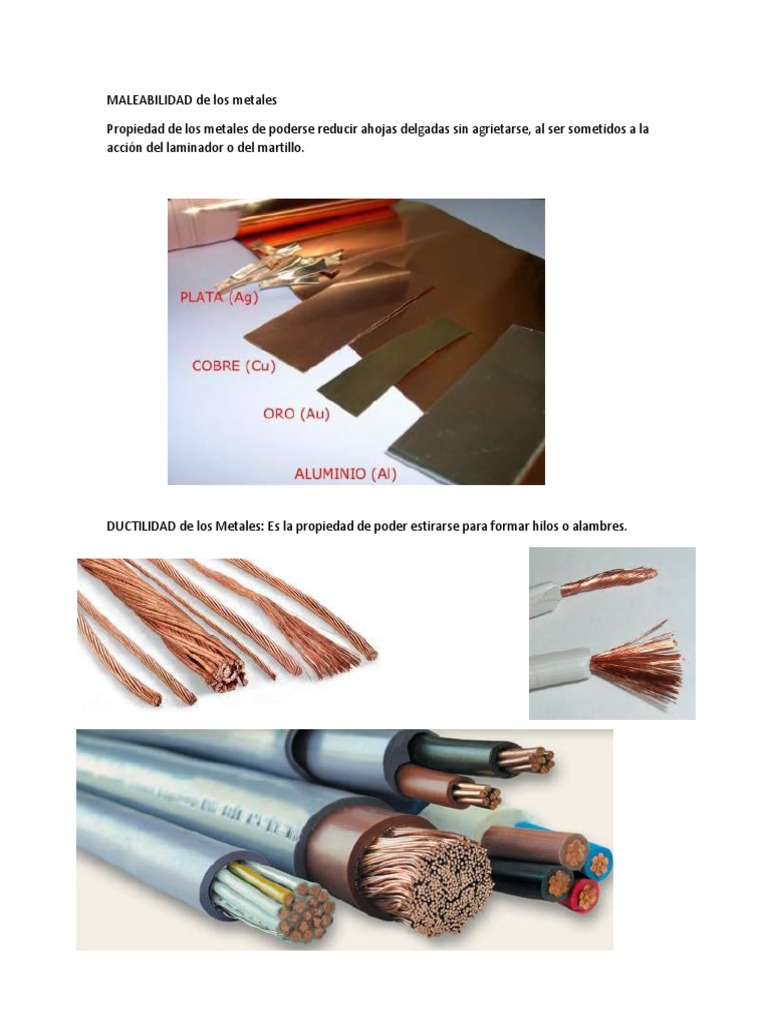 DUCTILIDAD de los Metales: Es la propiedad de poder estirarse para formar hilos o alambres.