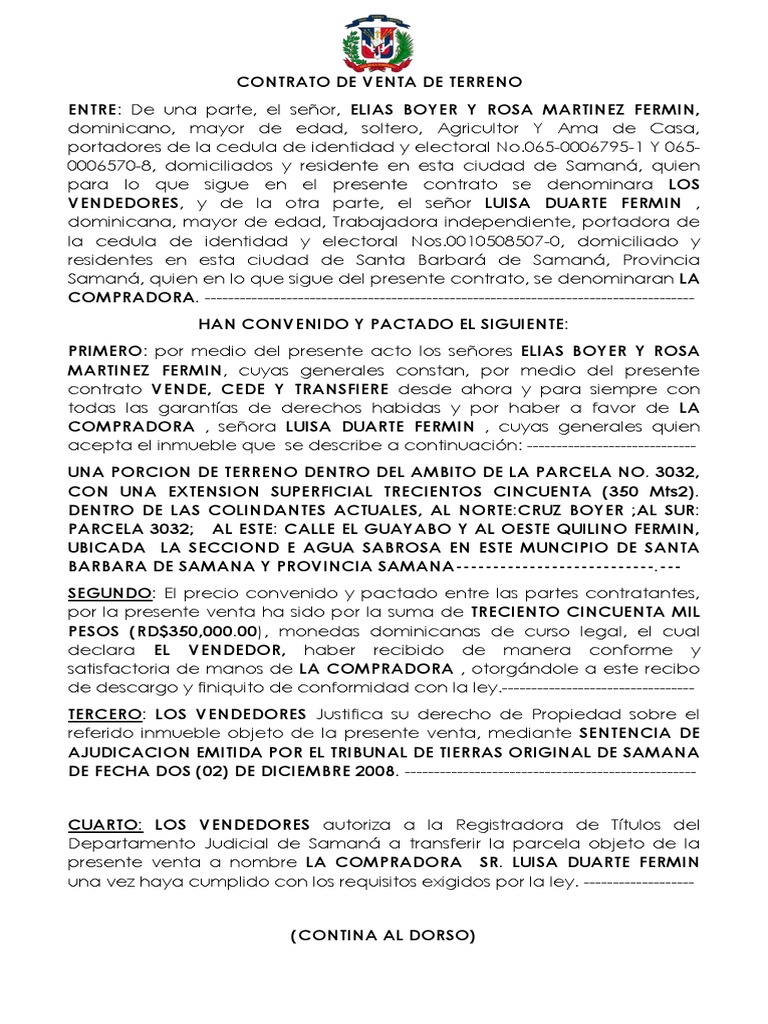 VENDEDORES, y de la otra parte, el seor LUISA DUARTE FERMIN ,