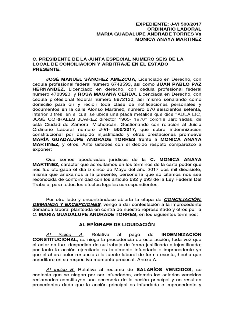 demanda laboral planteada en contra de nuestro representado y otros por la