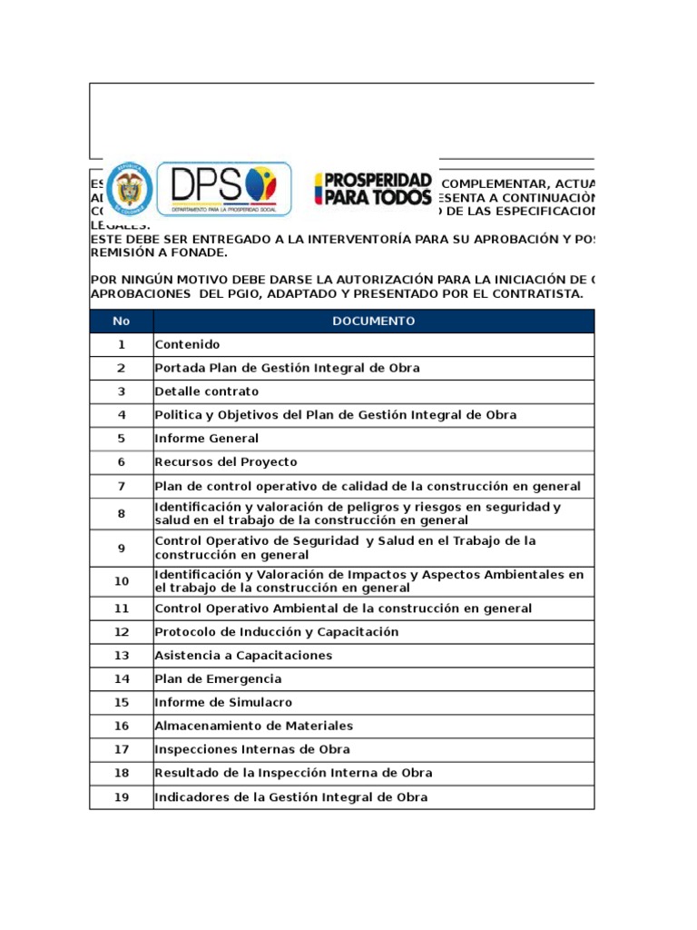 Disponer de un Plan de Gestin Integral de obra donde se identifiquen, definan y evaluen todos las caracter