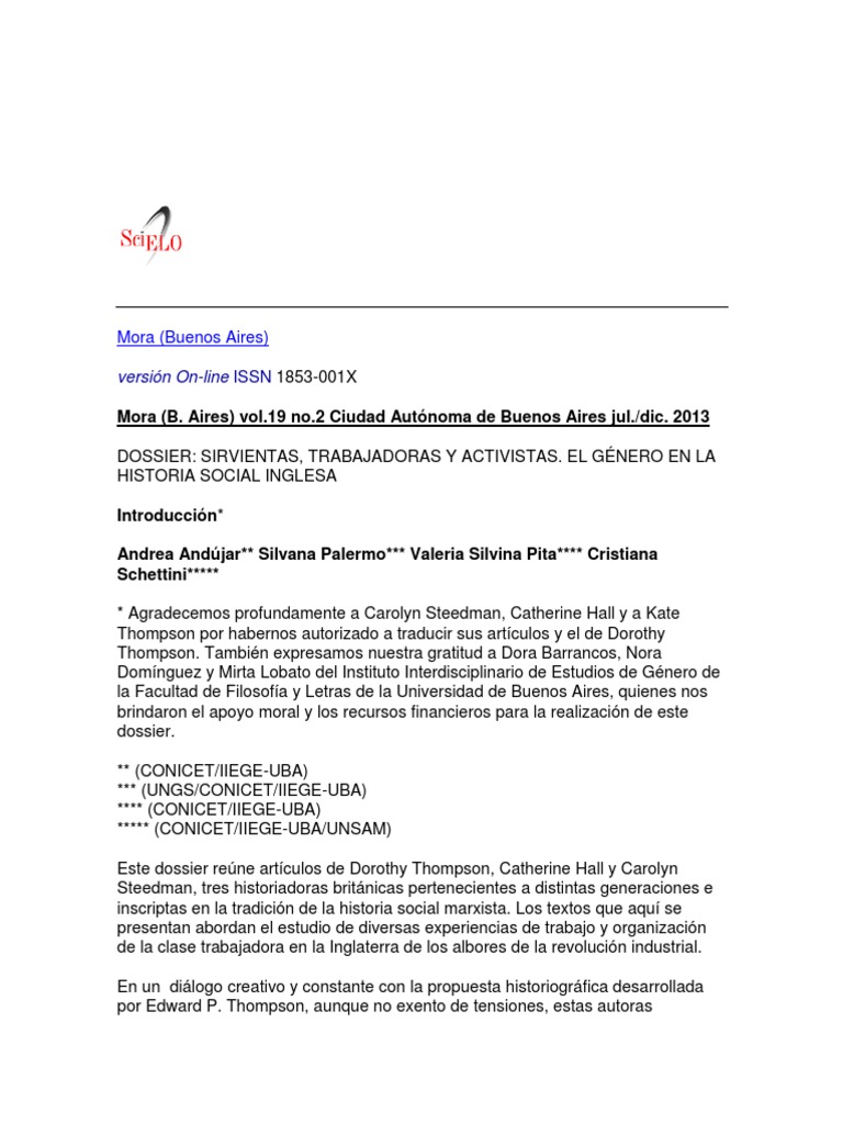 Este dossier rene artculos de Dorothy Thompson, Catherine Hall y Carolyn