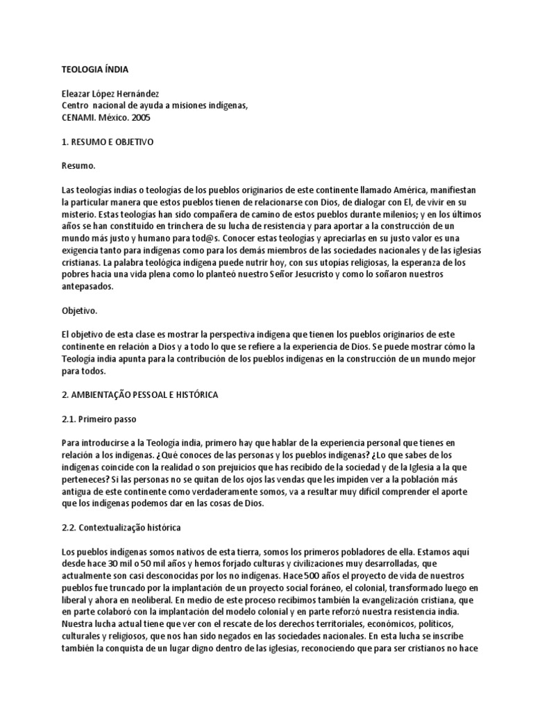 La Teologa india, amerindia o indgena se refiere a la rica sabidura religiosa de los pueblos originarios del