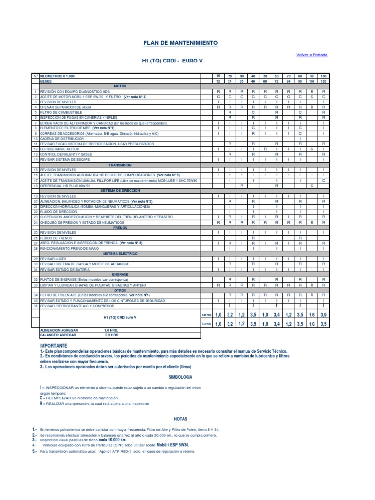 1.- Este plan comprende las operaciones bsicas de mantenimiento, para ms detalles es necesario consultar el manual de Servicio Tcnico.