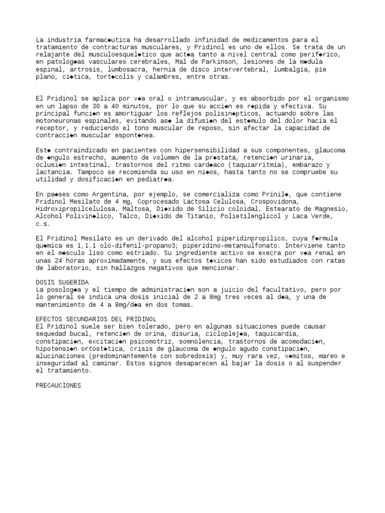tratamiento de contracturas musculares, y Pridinol es uno de ellos. Se trata de un