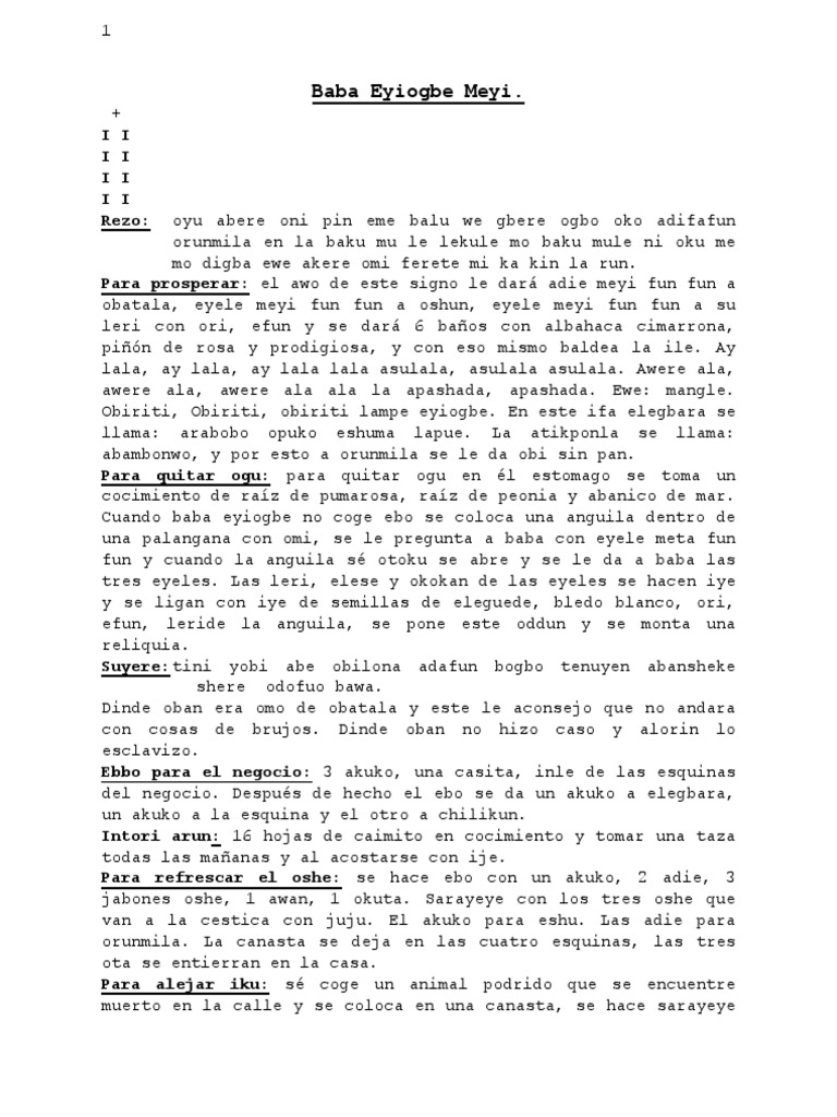 se dice: ariku babaya. Este ifa habla de quebrantos de cabeza.